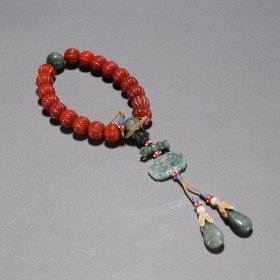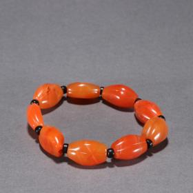 藏传 保山南红瓜菱珠手串。