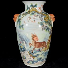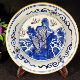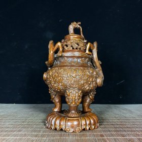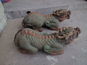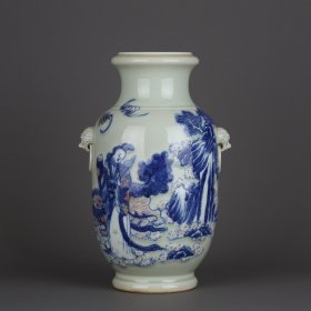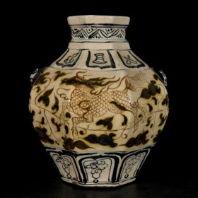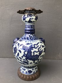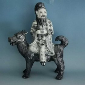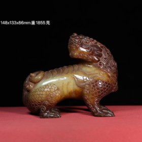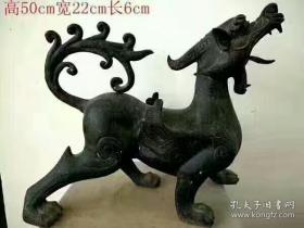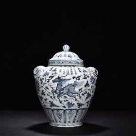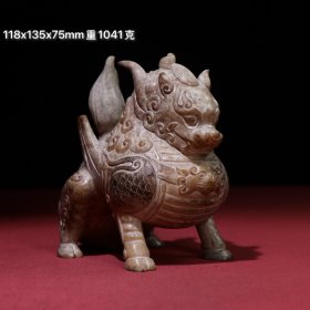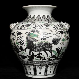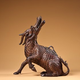 189_青花釉瓷器羊兽樽爵杯 青花麒麟纹 海水纹 塑形爵杯 釉色肥厚 浆体环绕 满功 饰松石绿 细纹开片 完美 高度109mm 长度148mm 重量290g