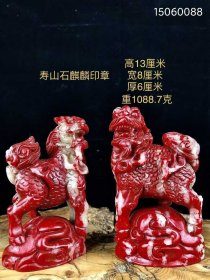 275_寿山石麒麟印章摆件一对,底部雕刻印章,通透性极好,冰凉如玉,玉质通透油润,雕工精细,手感光滑,血丝纹明显,麒麟是一种旺财,镇宅,催富贵,祥瑞之兽
