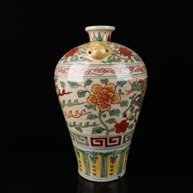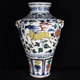 大明正统款红绿彩麒麟纹兽耳梅瓶 高宽:32*19cm