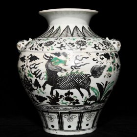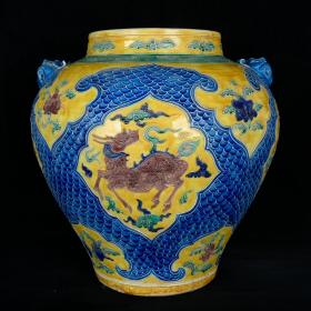 元博陵第青花五彩麒麟纹兽耳瓶,44.5×29,价格:1800