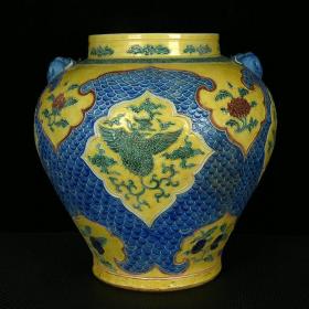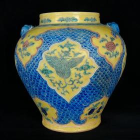 明永乐珐华彩麒麟凤凰纹兽头罐 高34厘米 直径33厘米