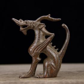 纯铜麒麟坐兽 尺寸: 长9.2宽3.7高9.5厘米 重约0.36KG