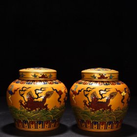 瓷器 明成化金地五彩麒麟兽纹盖罐 高15厘米 宽14厘米