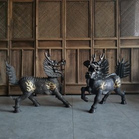 铜麒麟一对,祥瑞之兽!长105-高101厘米,重约4百斤