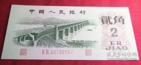 第三套人民币红2罗马平版贰角ⅤⅣ40799567一张54冠号中间双9号1962年2角全新无洗无斑无折 包真品纸钞钱币