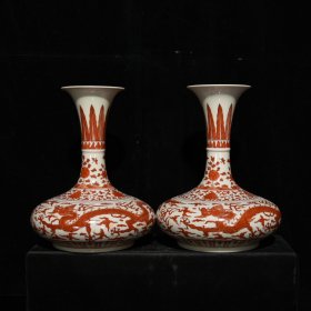 成化矾红龙纹赏瓶尺寸20*16厘米1