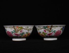 珐琅彩花卉纹碗一对,高7.2×15.5厘米1