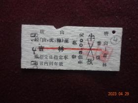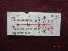 老票证:硬卡火车票“唐山-吉林”(1968年6月19日)[票面规格尺寸5.5*2.5厘米]1张