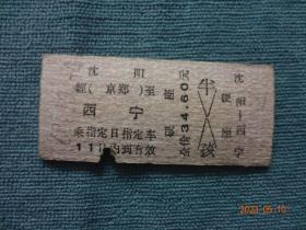 老票证:硬卡火车票“沈阳-西宁”(1968年10月4日)[票面规格尺寸5.5*2.5厘米]1张