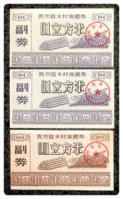 贵州省木材流通券0.1立方米2枚、0.01立方米1枚,合计3枚