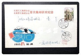 “J”字头纪念邮票实寄封:(浙江)兰溪工人邮协与永康职工邮协首次集邮联欢纪念封,贴J.109邮票,发行首日(联欢日)兰溪集邮家缪鹤翔先生寄瑞安