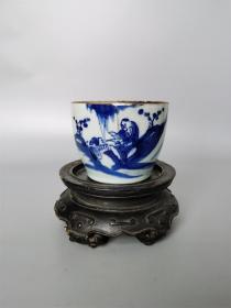 光绪青花人物故事缸 老瓷器 收藏回流茶器杯子矾红