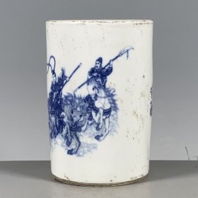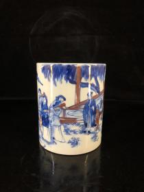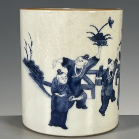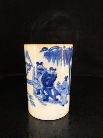 康熙青花人物故事笔筒(15.5×14cm)