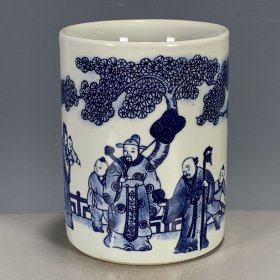 青花人物故事纹笔筒