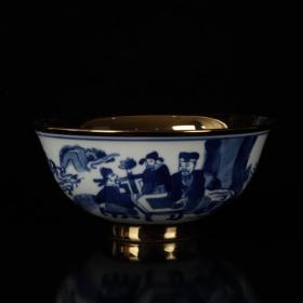 青花鎏金人物故事图纹碗 口径14.8cm高6.8cm