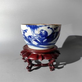 清中期开片青花人物故事碗