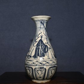 元代人物故事青花开片瓶