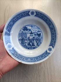 清代细胎人物故事青花碟子。lxl
