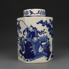 康熙青花人物故事六方盖罐