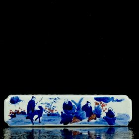 清青花釉里红人物故事镇纸。高4*20