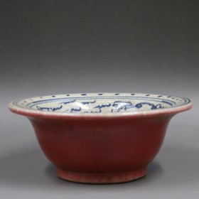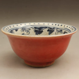 清青花红釉人物故事碗