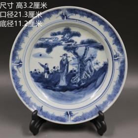 晚清手绘釉下青花人物故事瓷盘 瓷器