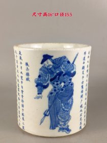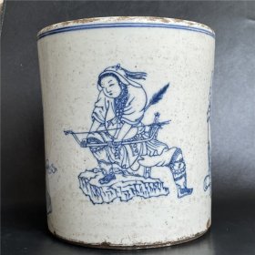 青花人物故事笔筒【17x15.3cm】
