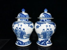 青花人物故事将军罐一对【 38.5x24cm 】