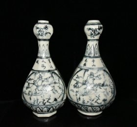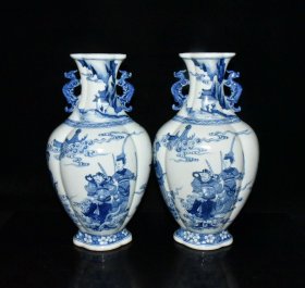 青花人物故事蒜头瓶一对【38.6×20.5cm】