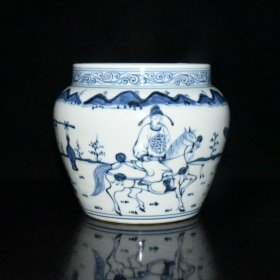 青花人物故事纹罐,高29×36厘米