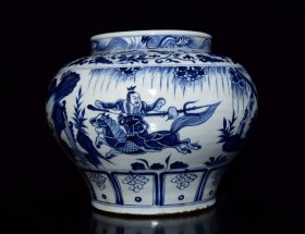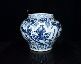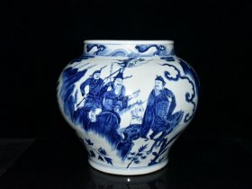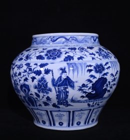 瓷器 元代成吉思汗青花鬼谷下山人物故事纹罐【 29.2x35cm 】