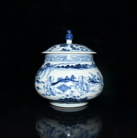 青花携琴访友人物故事小罐【14×17cm】