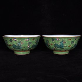 清雍正外粉彩麒麟纹内青花人物故事纹碗7.5×16.5,¥1120一对