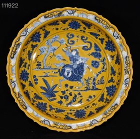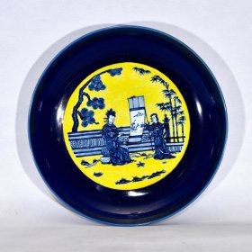 明宣德蓝釉黄釉青花人物故事纹盘,7.1×39.8