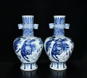 瓷器 明代宣德青花人物故事纹贯耳瓶一对【46×26cm】