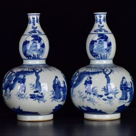 大明崇祯年制青花人物故事纹葫芦瓶 高:36厘米 宽:22厘米