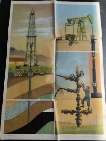 一九七二年小学科学常识教学挂图:《 石油的开采》,2开(77cm×53cm),金丽贞绘。上海教育出版社 1972年第1版1973年第2次印刷(实物拍图,外品内页如图,八开折叠邮寄)