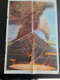 1972年小学科学常识挂图:《火山的爆发》,2开(77cm×53cm),袁兆熊 绘。上海教育出版社 1972年第1版1973年第2次印刷(实物拍图,外品内页如图,八开折叠邮寄)