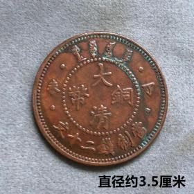 红铜铜板大清铜币丁未二十文直径约3.5厘米