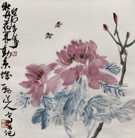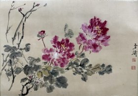 著名书画家裴如良牡丹立轴
