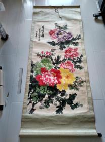 尹以壁国画牡丹(立轴,已装裱)