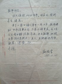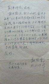 魏隐儒致褚家伟信札1页无封。魏隐儒(1916 -1993),男,汉族,原名魏文庄,曾用名魏文潜。生于河北辛集(原束鹿县)。中国民主促进会会员。是现代书画家、古籍版本学家。著有《中国古籍印刷史》《古籍版本鉴定丛谈》等多种专著。生前为中国书法家协会会员,北京美术家协会会员,中国书画研究社理事,北京社会科学学会联合会委员,中国美本书目编委会副主编,北京市图书馆学会理事,北京市文史馆馆员。