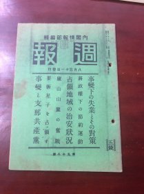 《周报》1938年8月 第98号,事变和中国共产党、抗日民族战线、西安事变、毛泽东、朱德、周恩来,中国空军,占领区的治安,庐山奋战,占领星子,蒋政权的节约运动