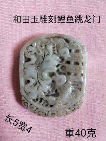 151_下乡所得和田玉雕刻鲤鱼跳龙门挂件,沁色完美自然,包浆浓郁,玉质油润,皮壳老辣, 雕工精细,收藏佩戴佳品。
