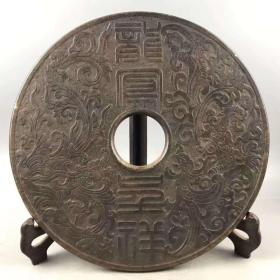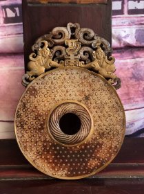 战汉时期高古玉龙凤呈祥玉壁摆件。双面精工。选材上乘,雕工精细,包浆老道,泌色自然,保存完整,成色如图,喜欢联系。