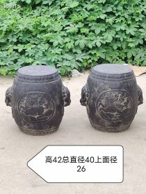 275_乡下偶得清晚期【青石绣墩】一对,四周雕工精细,两边高浮雕狮吊环突出,包浆皮壳自然,品像如图!