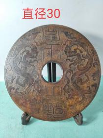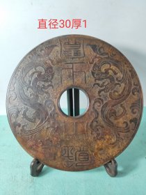 战汉时期高古玉玉壁镇宅之宝摆件。双面精工。选材上乘,雕工精细,包浆老道,泌色自然,保存完整,成色如图,