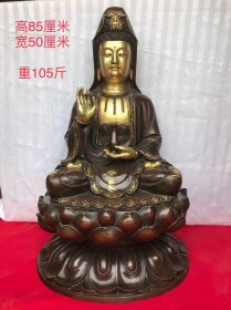 大明永乐年紫铜鎏金观音菩萨一尊紫铜胎鎏真金,雕工精细,开脸慈祥,纹理清晰,包浆自然,品相完美hhqz邮费自理
