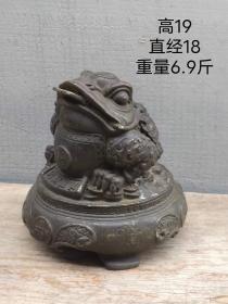 纯铜三足招财进宝金蟾,高10厘米,长13.6厘米,宽14厘米,重1229克